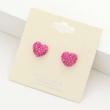 Simple little pink glitter heart with white rose and green leaf accents stainless steel stud posts
