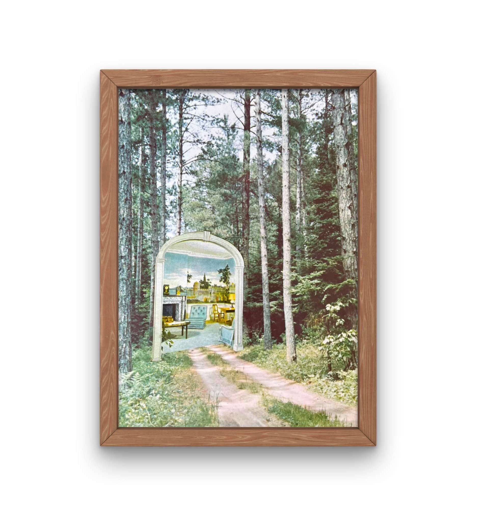 Mushroom typewriter vintage collage, cottage-core print, mushroom art print, vintage typewriter decor, dark green wall art, collage art print. Dark green background featuring a vintage red royal typewriter with mushrooms and fungi. Vintage collage wall art ready for a study, office, bedroom, bar, or anywhere in your electric decor. Great gift for an English teacher, English major graduate, English major graduate, a gift for the writer in your life, great inspiration for writer's block! 8x10 unframed art print with no borders. Printed on archival quality, acid-free, matte fine art paper. Please see the listing videos for close-up details of this one-of-a-kind artwork- the print featured in the video is exactly what you will receive. These collages are created using vintage materials.