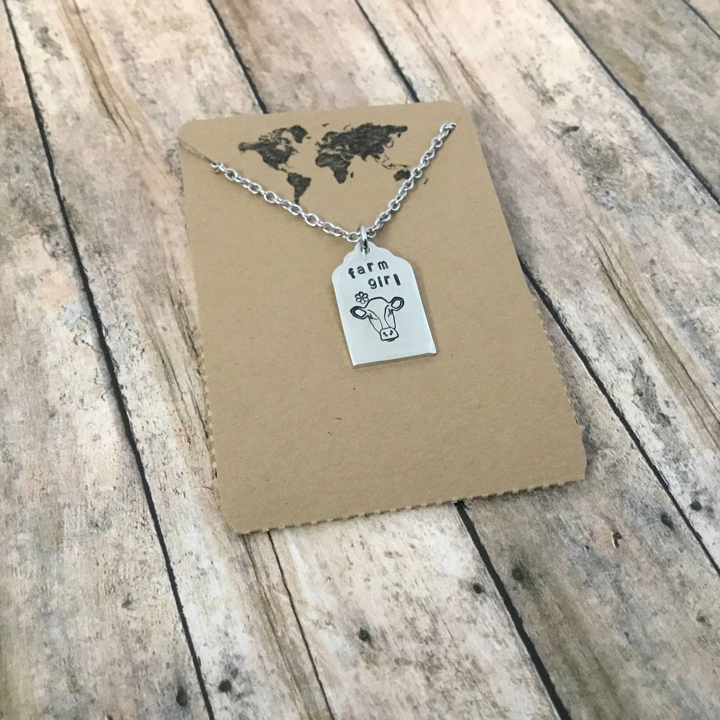Stamped pendant necklace with rustic hammered edges. Made with hypoallergenic materials. All jewelry is individually hand stamped and slight variations may occur. Approximate pendant size: 0.5”x0.85” Chain length: 18”. Pendant material: alkeme metal. Chain material: stainless steel. Feel confident in the longevity of your jewelry. Made with beautifully delicate looking, yet highly durable chains.