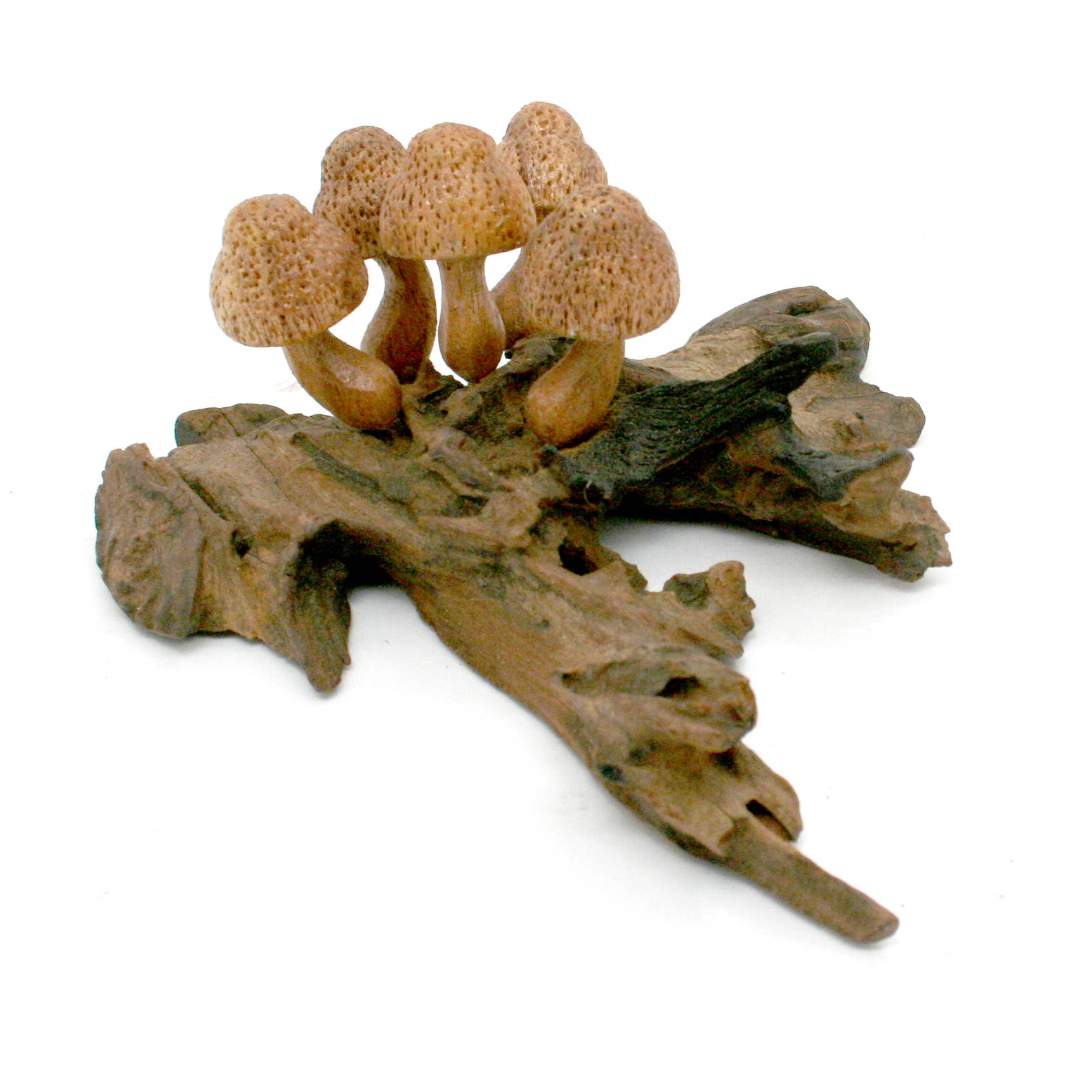 Wholesale Small Driftwood Blown Glass Mushroom with (3 flat, 1 bud).