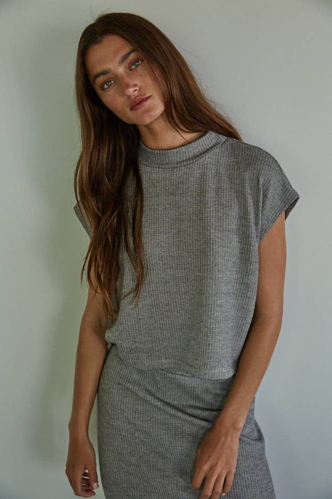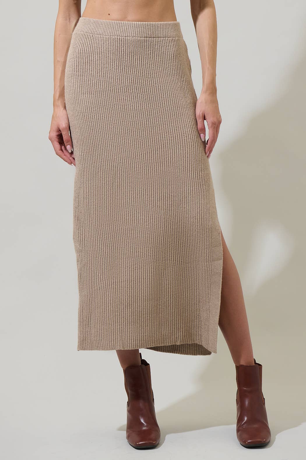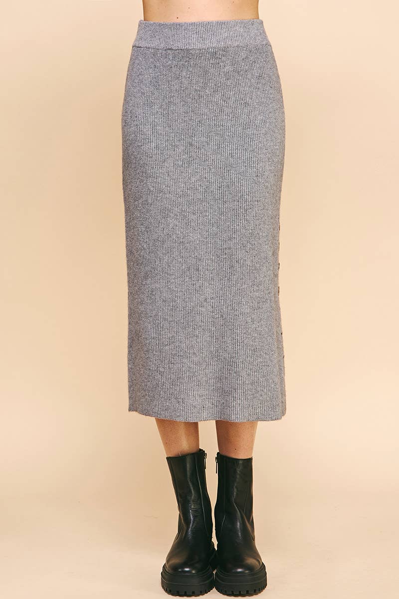 JADE SKIRT Knit Cotton Polyester Midi Pencil Skirt With Elastic Waistband And Back Slit (Optional Set Style#RJ3342)