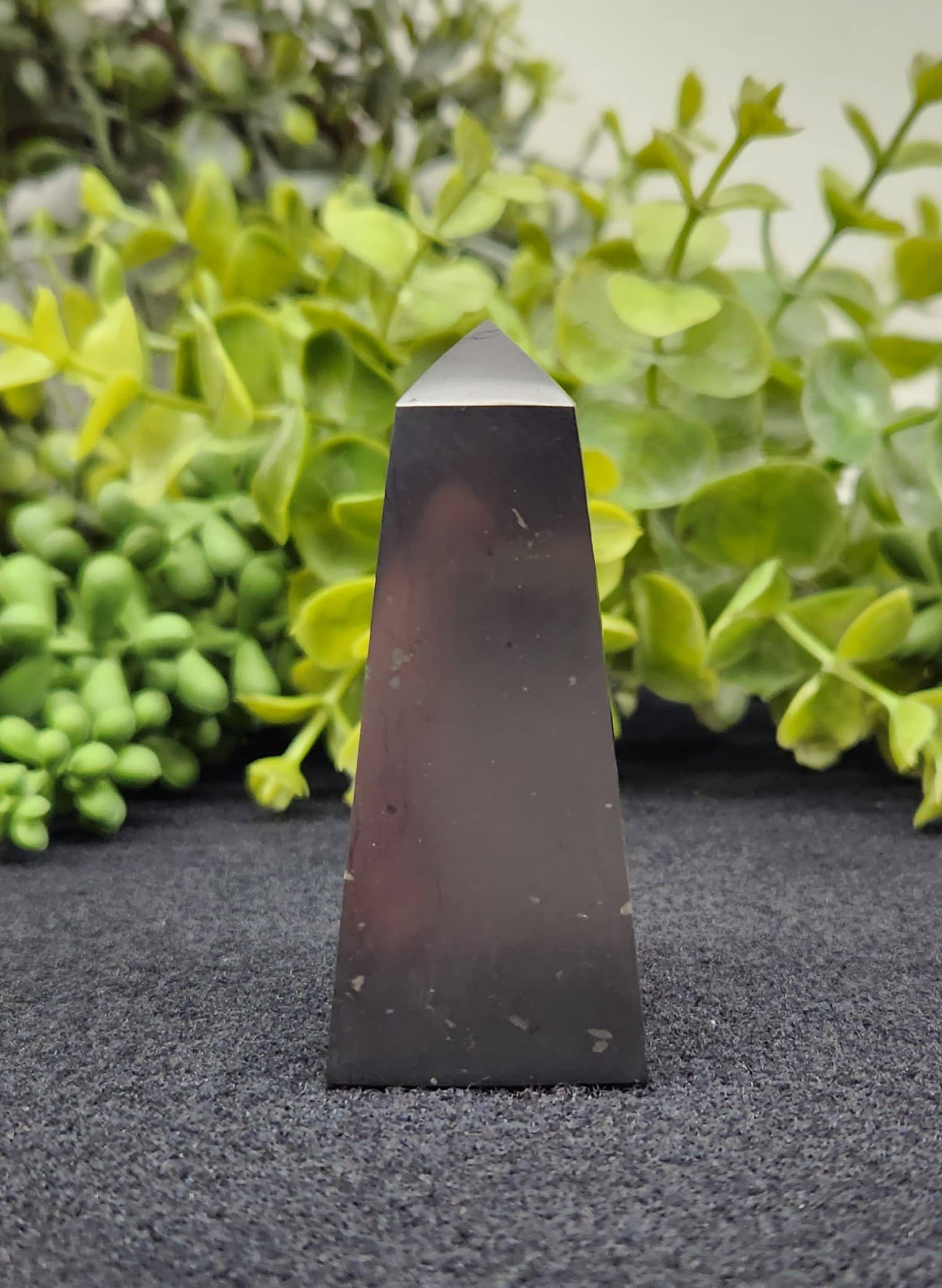 Natural Shungite Pyramid. Polished Handmade Size:- 20cm. Origin:- Karelia, Russia PRICE PER PIECE Shungite is basically a very pure form of Carbon, Precambrian carbonaceous rock of organic origin, which had been found only in Russia, Karelia, Lake Onega area. Its name comes from the small village of Shunga where it was first discovered. Scientists estimate the age of shungite to be approximately 2 billion years. It is conductive & a very interesting mineral that can be used for water purification & is said to be beneficial against EMF / Radio & Cell Phone Radiation.