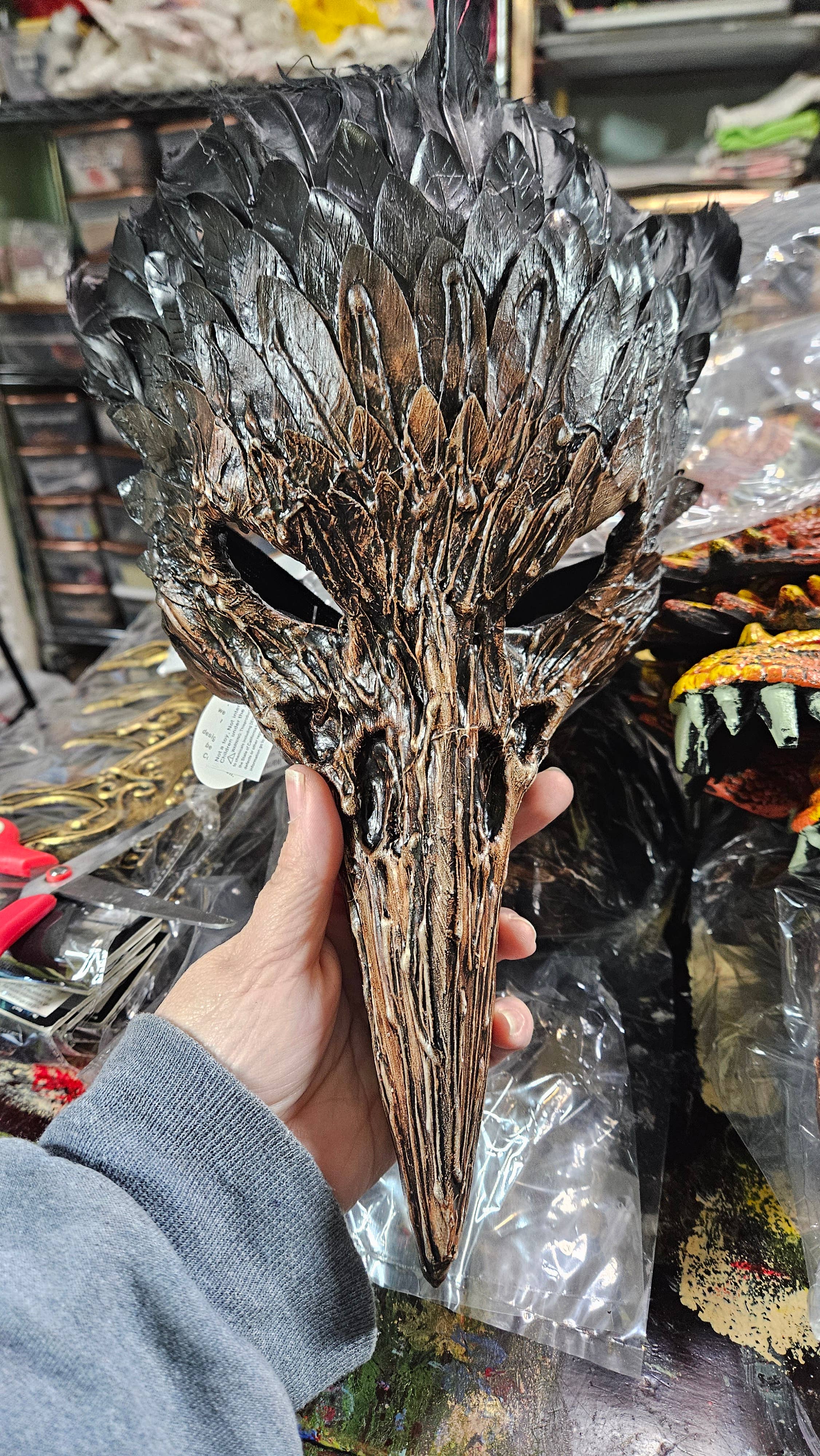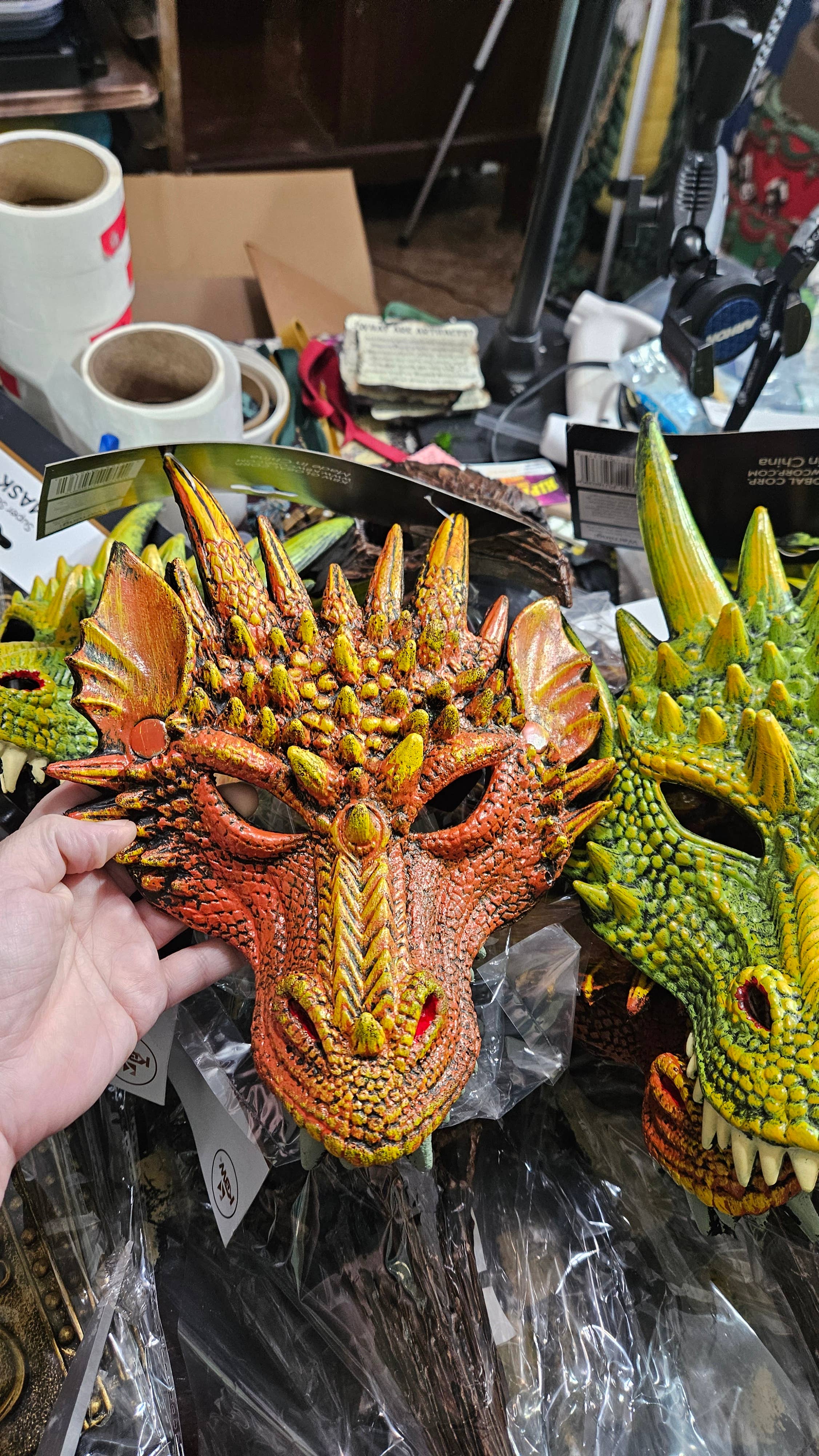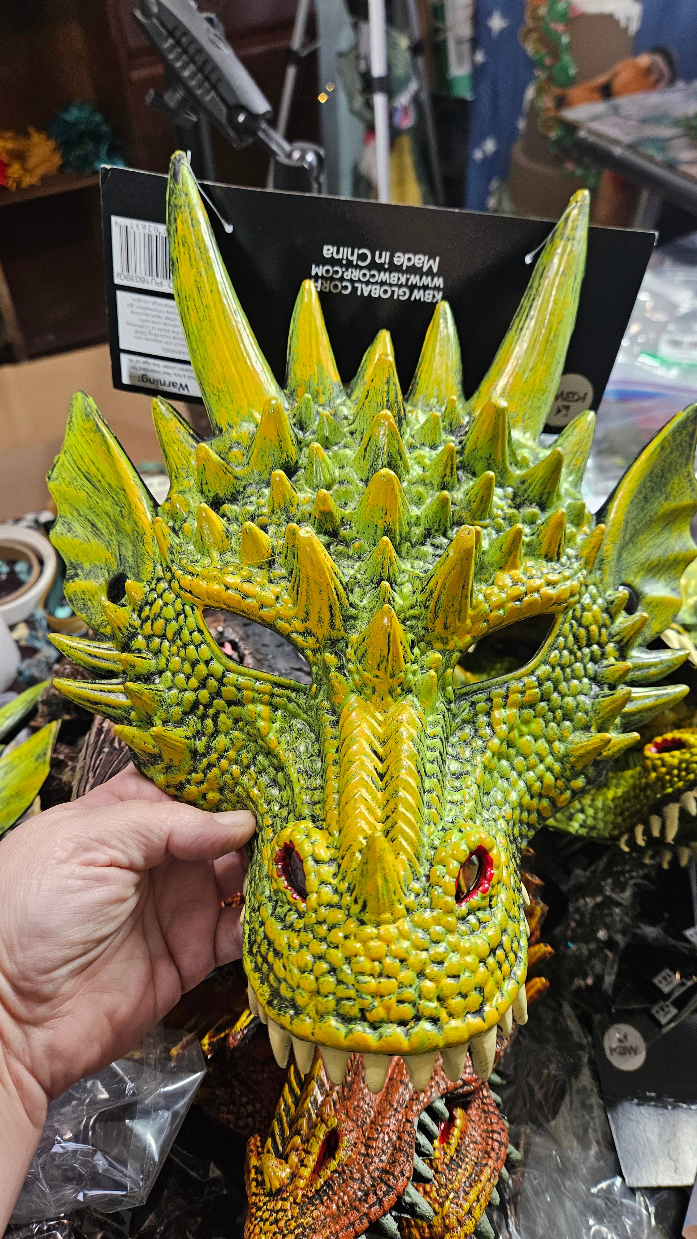 This coloring is red & orange. This mask is smaller than the green dragon one. It has less definition as well.