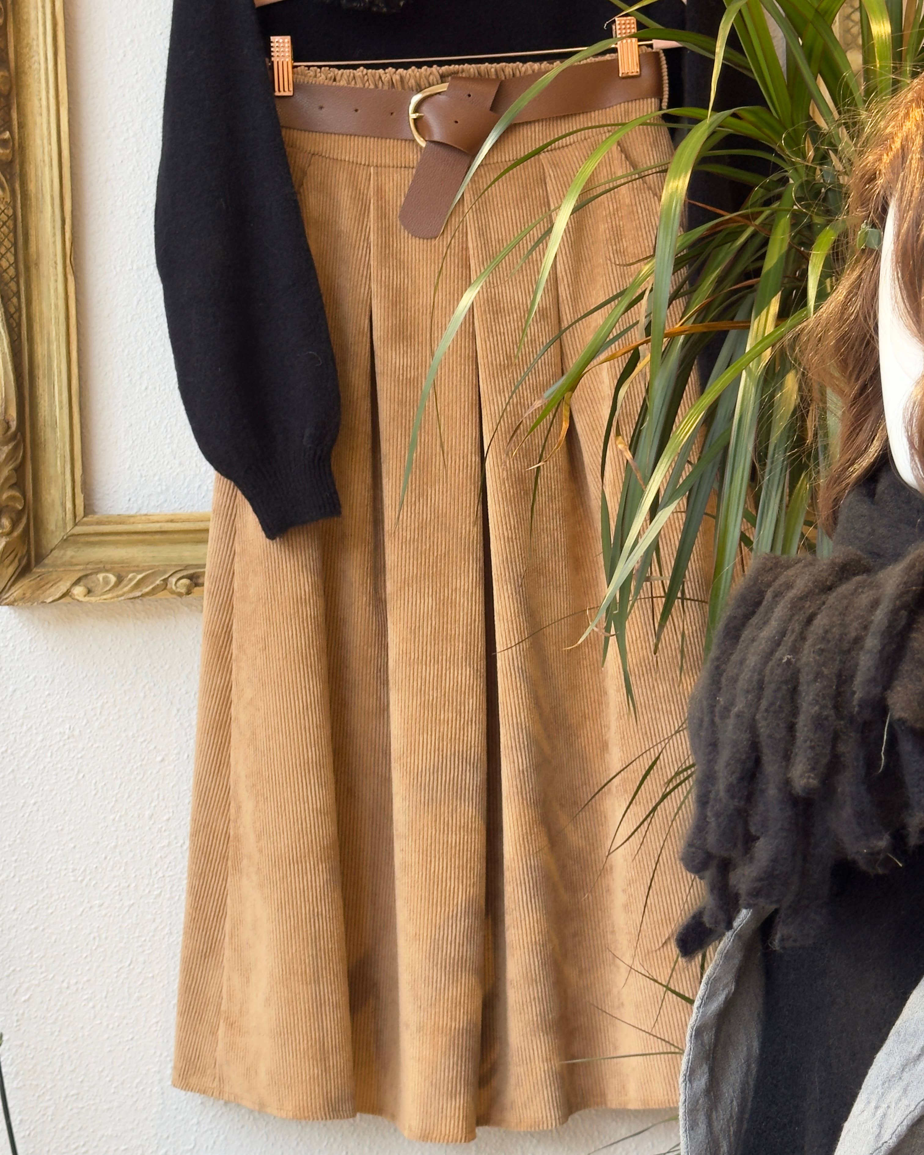 Corduroy skirt with belt TDM52123-7