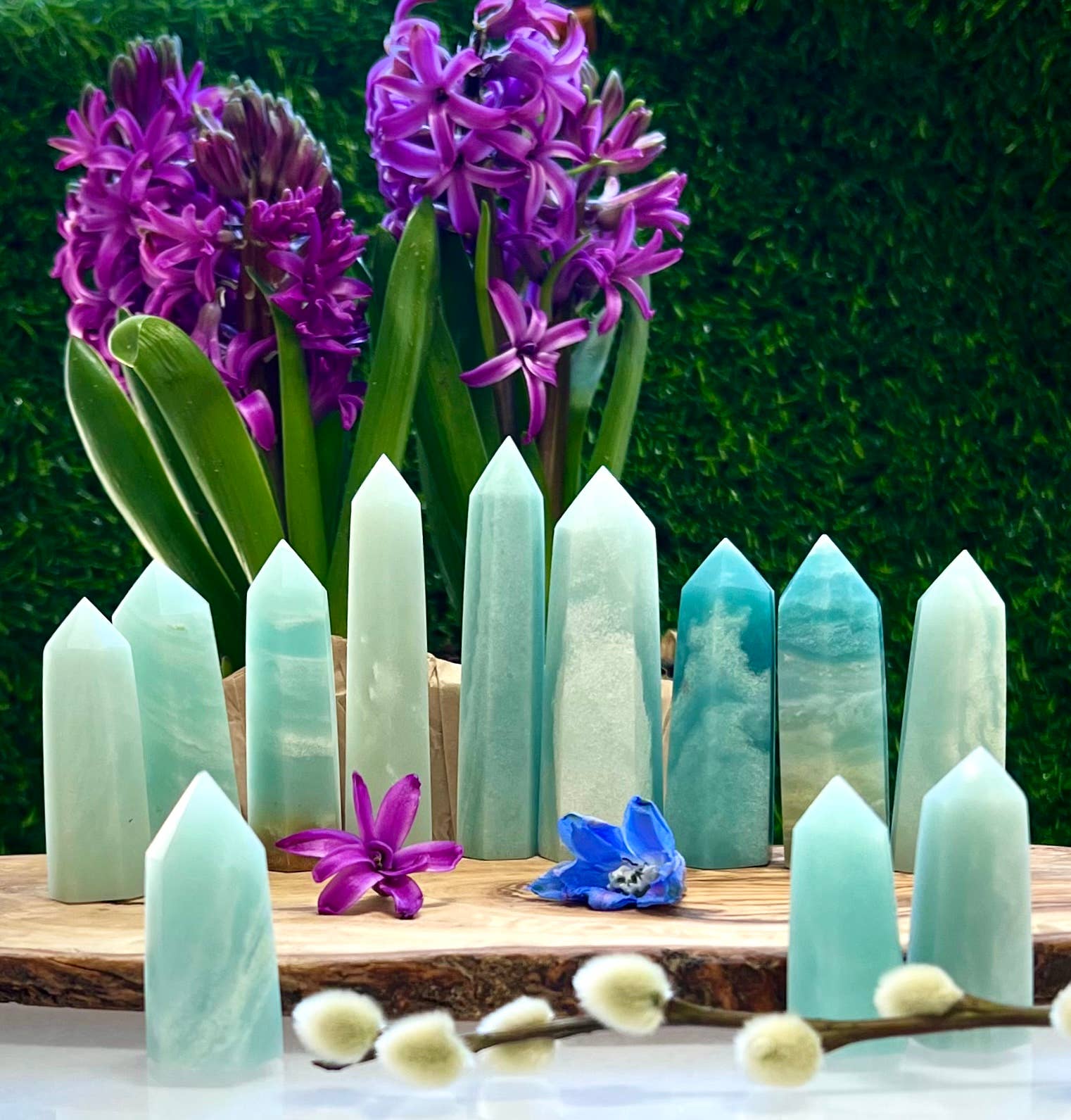 Polished Natural Caribbean Calcite Obelisks Obelisks are 4 sided Price is per kilogram Origin: Pakistan Handmade item Caribbean Calcite is a mesmerizing crystal known for its calming energy and captivating appearance, reminiscent of serene ocean waves. This unique stone, a combination of ocean-blue calcite and white or light brown aragonite, is revered for its powerful metaphysical and healing properties. Caribbean Calcite is often used to activate and align the third eye and crown chakras, fostering enhanced intuition, mental clarity, and spiritual growth. It is said to promote deep inner peace, helping to ease anxiety and stress while encouraging a gentle release of emotional blockages. Many believe this stone aids in lucid dreaming and connecting to higher realms, making it an ideal companion for meditation and spiritual exploration. With its soothing energy, Caribbean Calcite can also support restful sleep and inspire a sense of tranquility