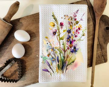 SewMuchMoreStore - Wholesale Tea Towel - Embroidered Wildflowers Floral State Towel -Raggy edge