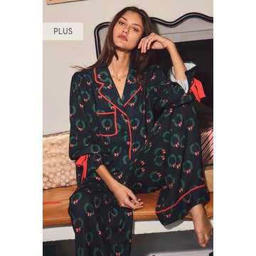 Wholesale Winter Dreams Short Sleeve Button Up Sleep Shirt Light Palace/White -Asst.