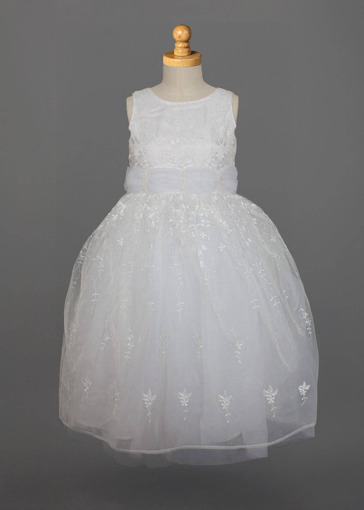 White Taffeta Pleated Communion Dress with Beaded Cross Detail for wholesale on Faire0