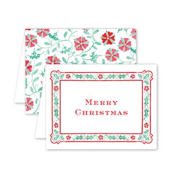 One of our prettiest holiday cards, this colorful poinsettia is printed with rich inks, and detailed in lovely gold foil. Printed on heavy stock paper. Folded A2 card, with holiday red envelope as indicated. Blank inside for your own message. Environmentally responsible paper. 8 cards (same design) are presented in clear box, with complementary envelopes. (Cards are also available singly, see separate entry.)
