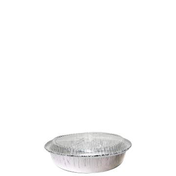 6 Disposable Round Aluminum Foil Food Pans with Clear Dome Lids EcoQuality Disposable Round Aluminum Pans with Clear Dome Lids Use our Foil Take Out Pans to perfectly bake and serve brownies, pies, tarts, and more. To prevent them from bending out of shape when filled with heavy foods, these sturdy foil food containers are made of premium aluminum foil. These heavy-duty food containers are oven-safe up to 500°F, allowing you to bake and serve meals in the same container. These foil food containers' freezer-safe design makes it simple to store leftovers. These aluminum foil containers come with matching lids that, when the lid's corners are folded down, firmly seal the container, preventing mishaps while you're on the road.