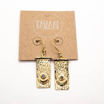 These Art Nouveau style earrings feature vintage stamped metal in antique brass accented by a crystal. The earring hangs about 2 inches from a European wire. If you do not see a color in the selection menu any color can be made by request!