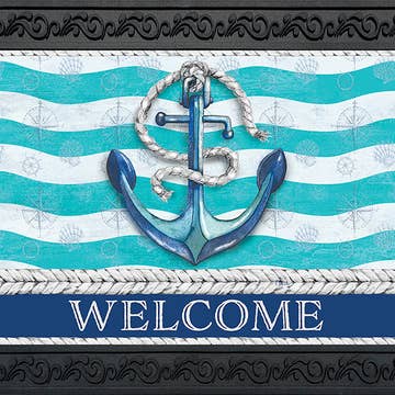 Whether you live near the beach or just enjoy a seaside lifestyle, this sailor-esque theme mat is the perfect accent to your décor, in navy. Hand hooked of weather-resistant fiber, this collection is a blend of comfort, softness and durability. Frontporch is remarkably easy to clean and treated for added fade resistance. Limiting exposure to rain, moisture and direct sun will prolong mat life.