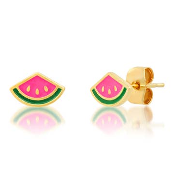 Handmade with ceramic clay, topped with shiny glaze and adorned with 22k gold accent, these watermelon studs are perfect for summer! Attached to stainless steel posts, these earrings are great for those with sensitive ears. These earrings are slightly larger than our triangle studs. Each individual stud measures approximately 0.354” x 0.354” Earrings will be affixed to our standard kraft or white square earring cards. Cards measure 2.5" x 2.5" _ _ _ _ _ Please let us know if you have a colour preference for which card stock they arrive on. I tend to use kraft cards for our white studs and white cards for our colourful studs. I find this helps complement their colours and allows them to really stand out to customers. _ _ _ _ _
