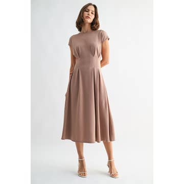 - Solid short sleeve midi dress featuring smocked waist. Zip-up closure at front. Side pockets. Lined. Woven. Non-sheer. Lightweight. - 80%POLYESTER 20%COTTON - 5'10" and wearing size Small