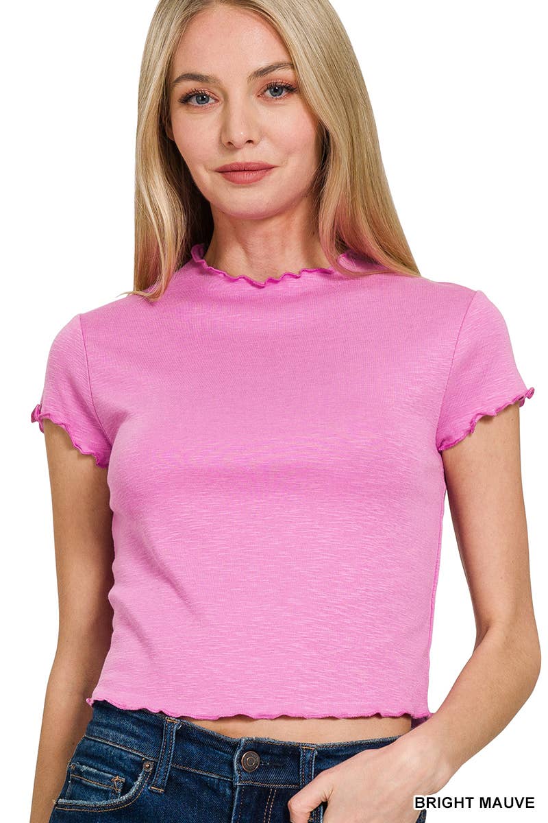 `.Washed Short Sleeve V Neck Top W Hi Low Hem