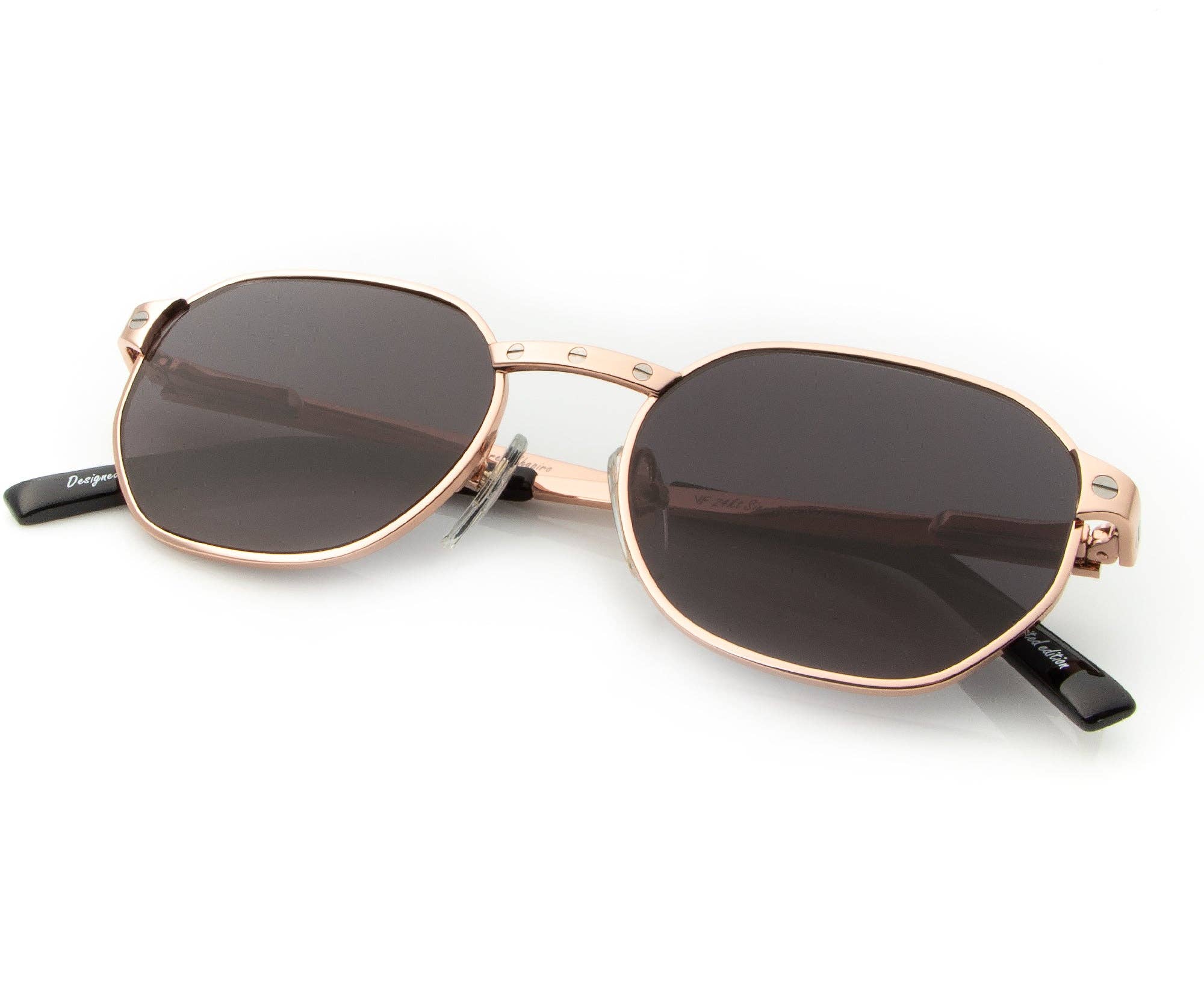 Verona makes a statement with its softly angled oval shape and sleek stainless steel construction. Its chunky gold temples and thick arm pieces are balanced by a thin front-facing frame, for a subtly sophisticated addition to any look.