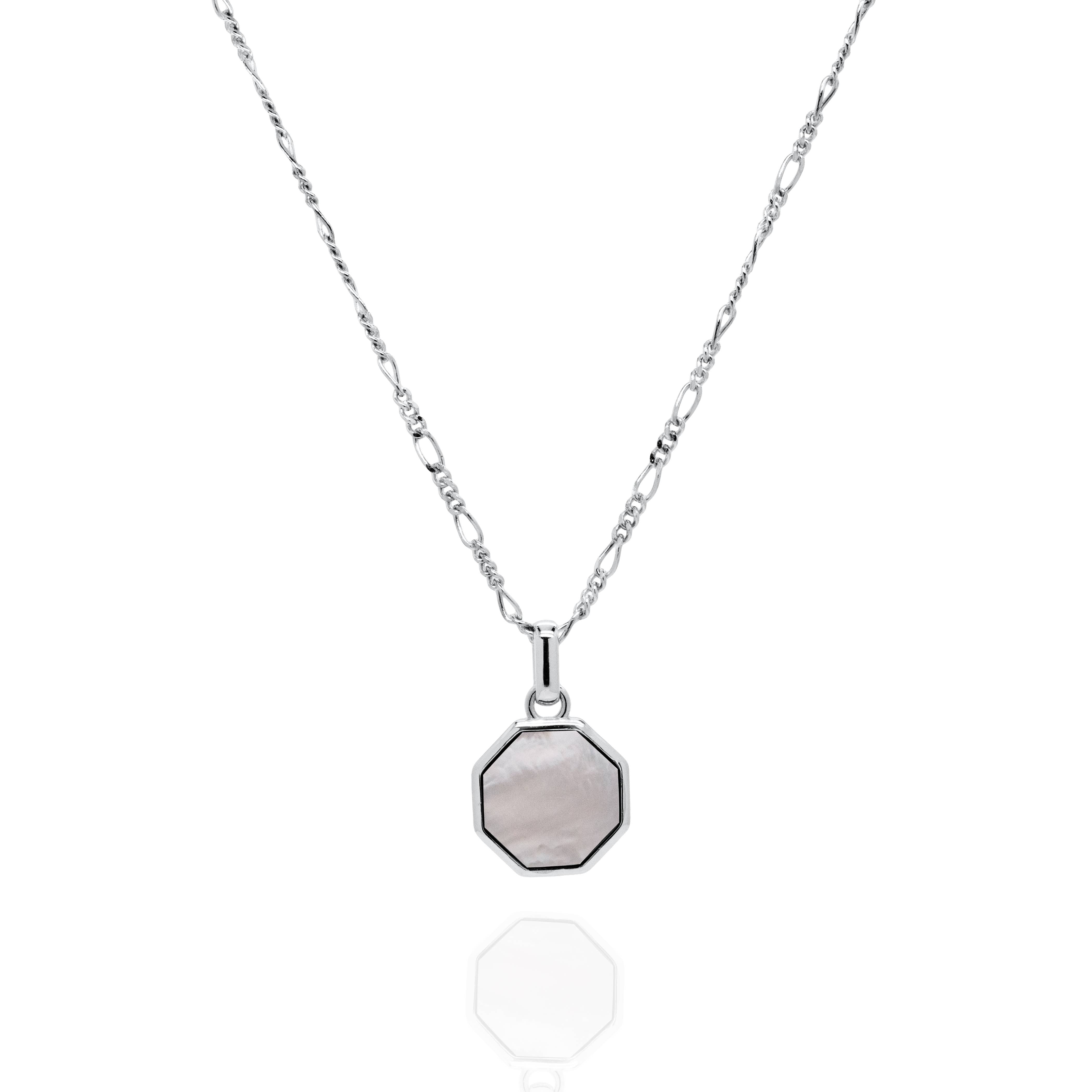 Mother of pearl has a lustrous and colorful appearance, making it a popular choice for decorative elements in jewelry. "dog tag" is commonly associated with military identification tags. In jewelry, it refers to a pendant shaped like a military dog tag, often customizable and worn as a statement piece. Onyx is often associated with strength and protection in various cultures. Size : 15+2" Tag Size: 11mm x 17.8mm Material: Sterling Silver Finish: High Quality 14kt Gold Vermeil Stone : Pearl