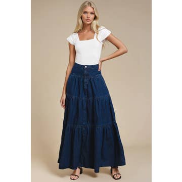 ASYMMETRICAL RUFFLE MIDI SKIRT - Asymmetrical midi skirt with a bohemian-inspired silhouette, perfect for adding movement and flair to any outfit. - Dramatic ruffle trim cascades diagonally across the skirt, creating a layered, feminine effect. - Midi length hem finishes mid-calf, making it versatile for day-to-night styling. - Comfortable stretchy elastic waistband offers an easy, pull-on fit ideal for all-day wear. STYLE MEASUREMENTS (SIZE SMALL) Total Length 31 1/2" Waist 13 1/2" Hip 25 1/2" 100%TENCEL MODEL IS 5'9" | BUST 32" | WAIST 25" WEARING SMALL