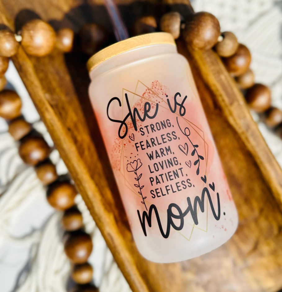 This adorable 16oz Libby Glass Tumbler is perfect for your iced coffee, water, or your favorite cold beverage. All Glass Tumblers are handmade with sublimation Images that won't peel. Grab one for yourself or give to a family member, friend, or coworker these make excellent gifts. Cup Care: -Includes glass cup, bamboo lid, and plastic straw -Gently Hand wash in warm water, Do not scrub. - DO NOT soak -Not dishwasher or microwave safe. All pieces are done by hand and all are subject to slight imperfections.