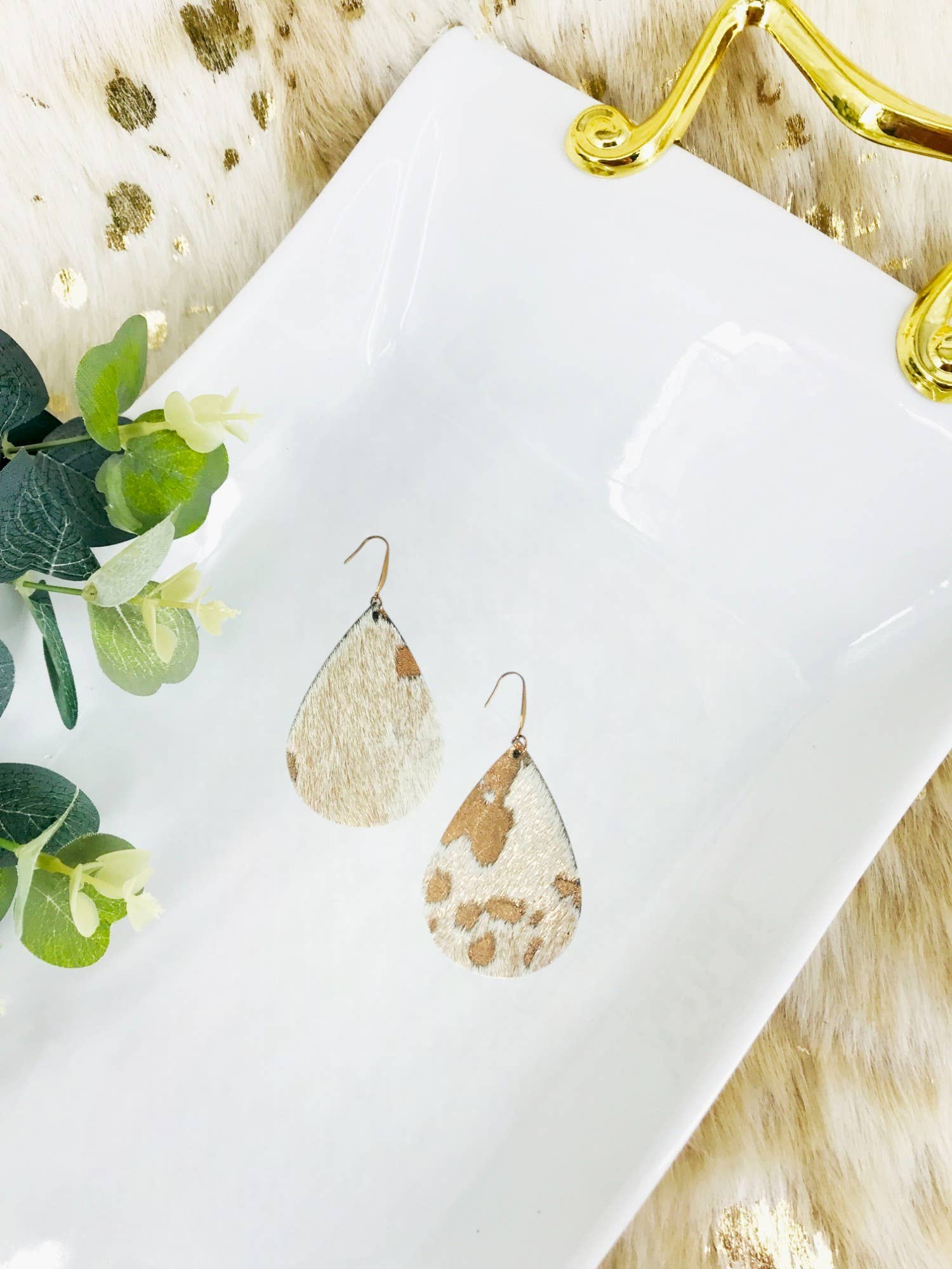 Mink Fur Fan Shaped Tassel Earrings with Gold Tone Stainless Steel Findings and Ear Wires. Drop: 1.25" Width: 1.25" Actual Pattern May Vary.