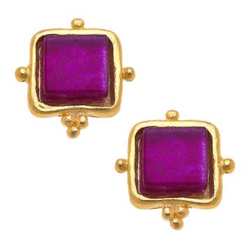Crystal Druzy Stud Earrings with Gold or Silver Edge