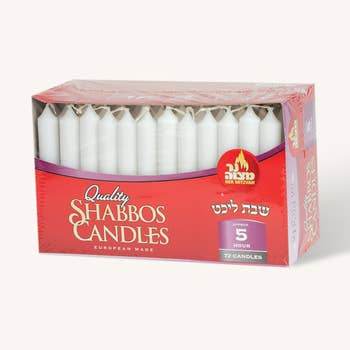 Box of 12 premium colored candles for Shabbat & Holidays.
