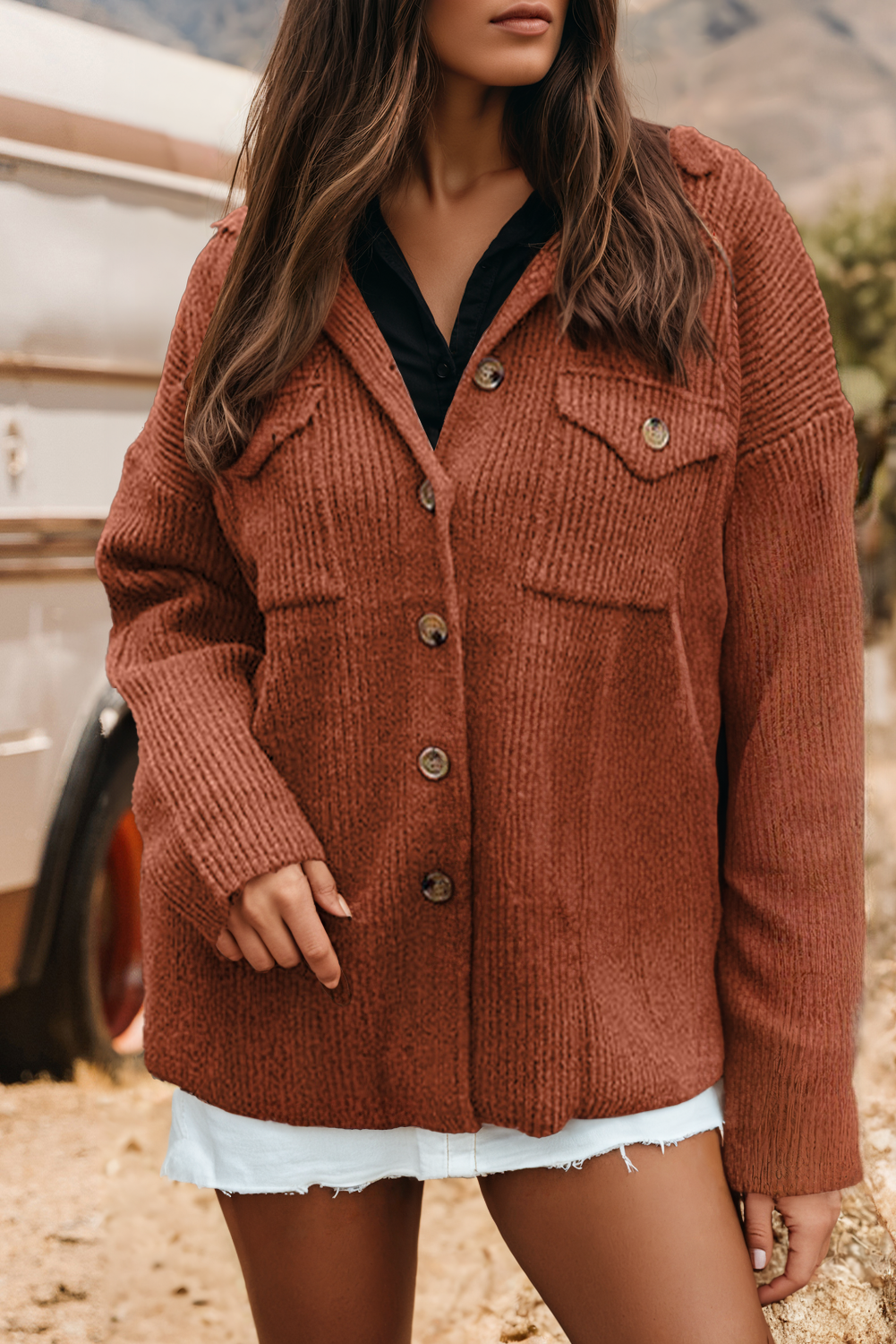 CF-WZD031 Solid Jacket Button Up Jacquard Shacket