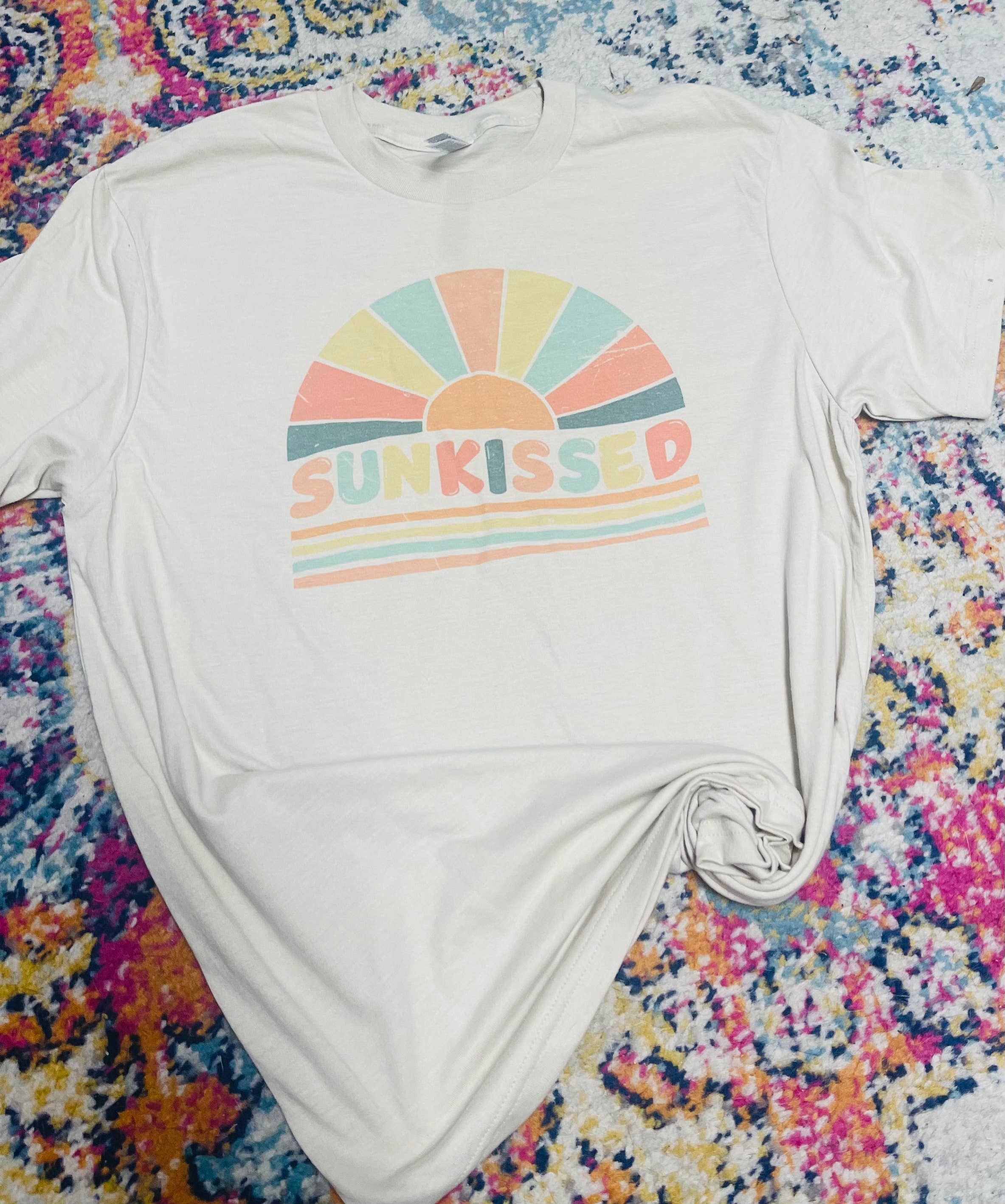 SUNKISSED Cropped Mineral Washed Graphic Top -100% Premium Cotton Jersey. -Relaxed Cropped Fit. -Screen Printed with water based ink. -All items are slightly different because of the dying process of the garment. -Exclusive Oat collective Label.