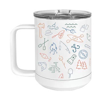 Our 12oz insulated mug features our original art and is the perfect travelling companion! The durable stainless steel body and double wall construction for added toughness keeps your favorite beverage hot or cold for hours. This mug boasts a lovely glossy finish and clear acrylic snap-on leak-proof slide lid. We recommend handwashing. Printed in the USA.