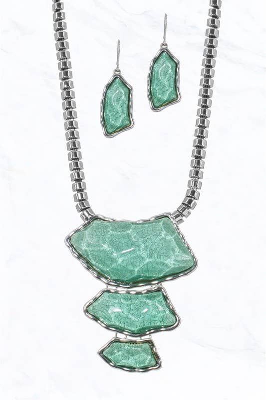Product Information: Stone Type: Forest Green Helenite Stone Origin: Skamania County, Washington, USA Stone Weight: 5.6 Carats (Earrings), 6 Carats (Pendant) Metal: Solid 925 Sterling Silver w/ Rhodium Finish Suggested Retail Price: $194.00 Helenite is a gemstone that resulted from volcanic ash and rocks, and is also referred to as emerald obsidianite, Mount St. Helen obsidian. The volcano erupted on May 18, 1980, and ejected igneous rock from 10-20 miles underground. The fury of the volcanic eruption is a wondrous occurrence in nature. The beauty that has been created from itHeleniteis a fantastic thing to hold. Helenite is made by fusing this material at 2700° F, which we facet and polish.