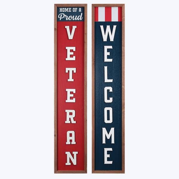 A classic denim-inspired design with crisp white stripes and bold navy blue bands creates a fresh, patriotic aesthetic that celebrates American heritage. The clean, horizontal stripe pattern evokes the timeless appeal of vintage Americana, while the color palette—deep indigo and bright white—conveys both strength and welcoming warmth. The typography is rendered in a friendly, hand-painted style that feels inviting and approachable, perfectly suited to greeting guests as they arrive. This charming porch board captures the spirit of traditional American hospitality with understated elegance. The message reads "Welcome." Made from weatherproof board engineered to withstand the harshest outdoor elements and ensure unmatched durability. Measures 8" x 46.5" x 0.5", weighs 3.3 lbs, and is proudly designed, manufactured, and printed in the USA. This porch board is designed to hang on your front porch, entryway, or outdoor gathering space using the convenient twine handle on the back. The weather-resistant construction makes it ideal for year-round display, whether mounted above your door, along a porch railing, or as part of an outdoor welcome vignette. It sets a warm, inviting tone for visitors and perfectly complements farmhouse, cottage, or traditional American home décor. This is a thoughtful housewarming gift for those who take pride in their home's curb appeal and American-made craftsmanship. It's ideal for celebrating patriotic pride, welcoming guests to a new home, or adding a touch of vintage Americana to any outdoor space. The durable, weather-resistant design ensures it remains a cherished part of your porch décor for years to come.