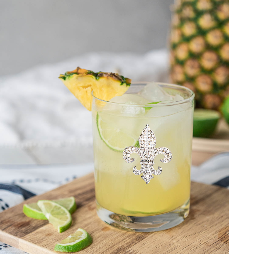 Introducing the Fleur-de-Lis Bar Glasses Set of 4 - a stunning and sophisticated addition to your home bar, entertainment space, or glassware collection. These elegant glasses boast a beautifully embossed Fleur-de-Lis design, adding a touch of regal charm and classic sophistication to any occasion. Each glass in this set of four showcases the iconic Fleur-de-Lis symbol, a centuries-old emblem representing royalty, nobility, and refinement. With their exquisite design and premium quality, these glasses will elevate your sipping experience and impress your guests. Size: 3.75" Tall 12 oz Care: Hand wash and air dry after use