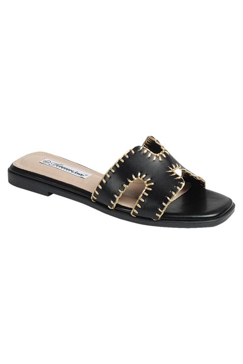 These stunning sandals are a fusion of comfort and glamour. Adorned with intricate embellishments, they effortlessly transition from day to night, making every step a statement. Step out in fashion-forward confidence with Lenny! Type: Sandals Upper Material: Nubuck Faux Leather Outer Sole: Rubber Open Round Toe Lenny Embellishment Detail Pin Buckle Fastening Flat Heels SH4696