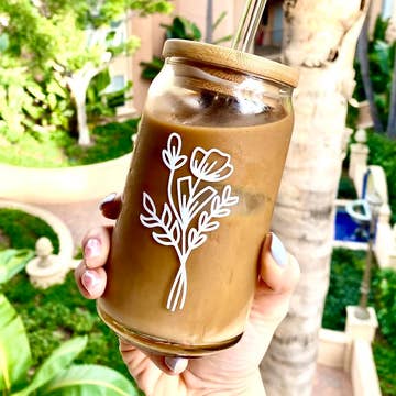 Do you make an iced coffee first thing in the morning? Wait, who doesn't? Let this glass up-level your morning iced latte, matcha, tea, you name it....this glass makes it taste better. Bring out your inner tiktok-wellness-green juice era but make it cute. If this design doesn't suit you, we have more to check out! Make your glassware match your vibe, your house and bring out your unique personality. Style it on your bar cart next to your beloved Tito's or mocktail mix filled with adaptogens. Just don't forget to get a lid and straw to match. Because we all know we're running late and now we need to take our coffee on the go. This is our classic sized glass for the girlies who don't finish their drinks, order a tall or grande at Starbucks or who mostly make iced lattes with only a shot of espresso.