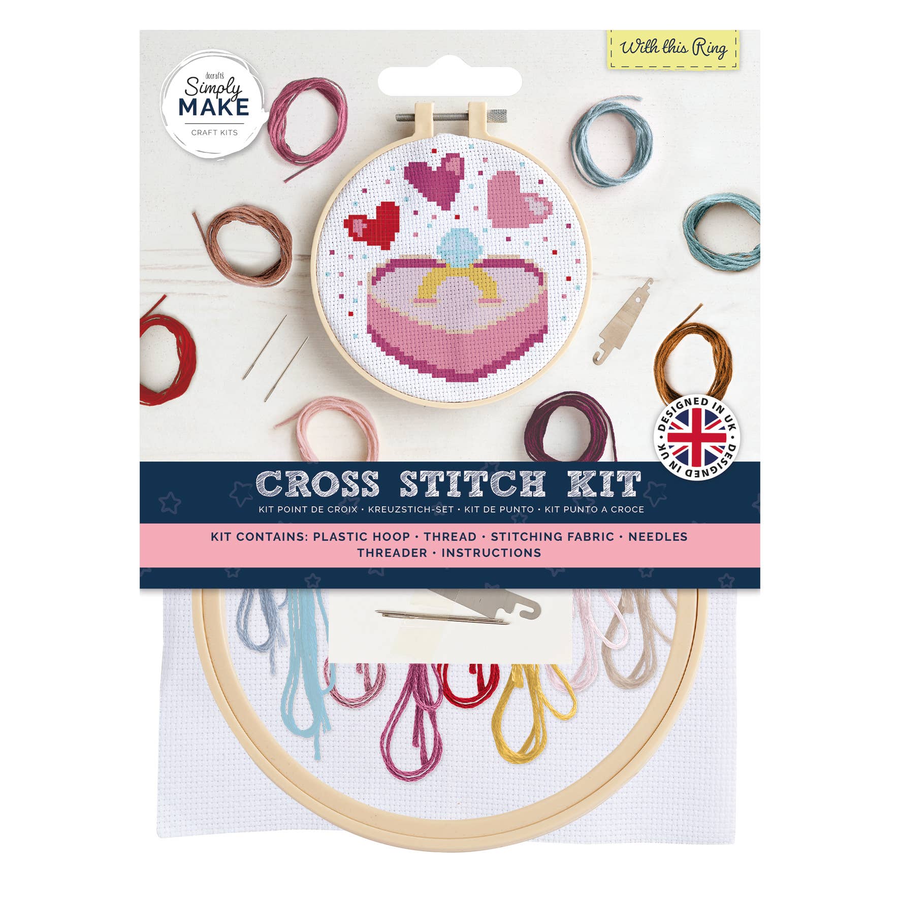 BRAND Simply Make kits contain everything you need to create a crafty masterpiece for you or your loved ones. Crafting skills are not a prerequisite as the kits could not be easier to use. USE Cross stitch is becoming popular once again for older age children and adult! Simple to create cross stitch design using the materials and instructions included. Cross Stitch hobbies are known to be one of the simplest types of hand needlework. PRESENT Gift to your friends and loved ones. Simply Make cross stitch designs will add a dash of colour to your home décor or cheer up your loved ones who need uplifting! Perfect birthday or Christmas Gift. CREATIVITY Create a stunning project that is sure to impress with this wonderful crossstitch kit! CONTENTS The kit includes a plastic hoop, 8 threads, stitching fabrics, x2 needles and a threader, along with a handy set of instructions to guide you.