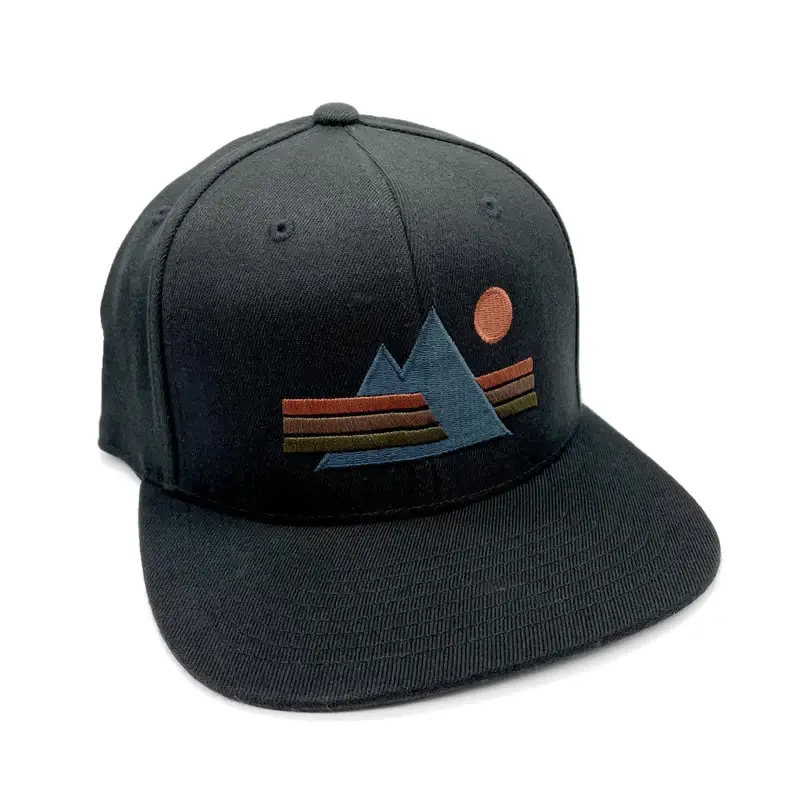 This mountain-themed hat showcases a crisp and clean original illustration depicting a linear-styled landscape with mountains and trees. The perfect trucker hat for any day out on the trails! Our high-quality trucker hats also make great gifts for men and women who love nature and the outdoors. They're an awesome gift for birthdays, Christmas, and Father's Day. Custom Wool Front Mesh Backed, 6 Panel Custom Trucker Hat, with a Structured Crown, Flat Bill & Classic Snapback. - Can be creased down Embroidered Isacord 1 Thread Color ::::::::::::::::::::::::::::::::: ADJUSTABLE BACK FITS ALL SIZES - ONE SIZE
