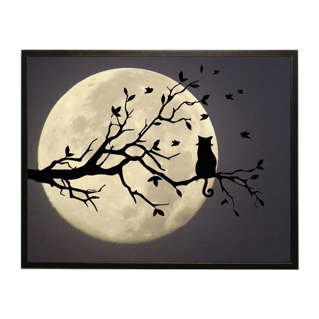 8x8" archival ink print Fits 8x8 or 10x10"" with a white mat. Includes acid free backer board, label and clear slip cover for display. Original painted in acrylics and collage in my happy Oregon studio. Giclee canvas prints available by inquiry. Kitty enchanted by summer fireflies in the garden.