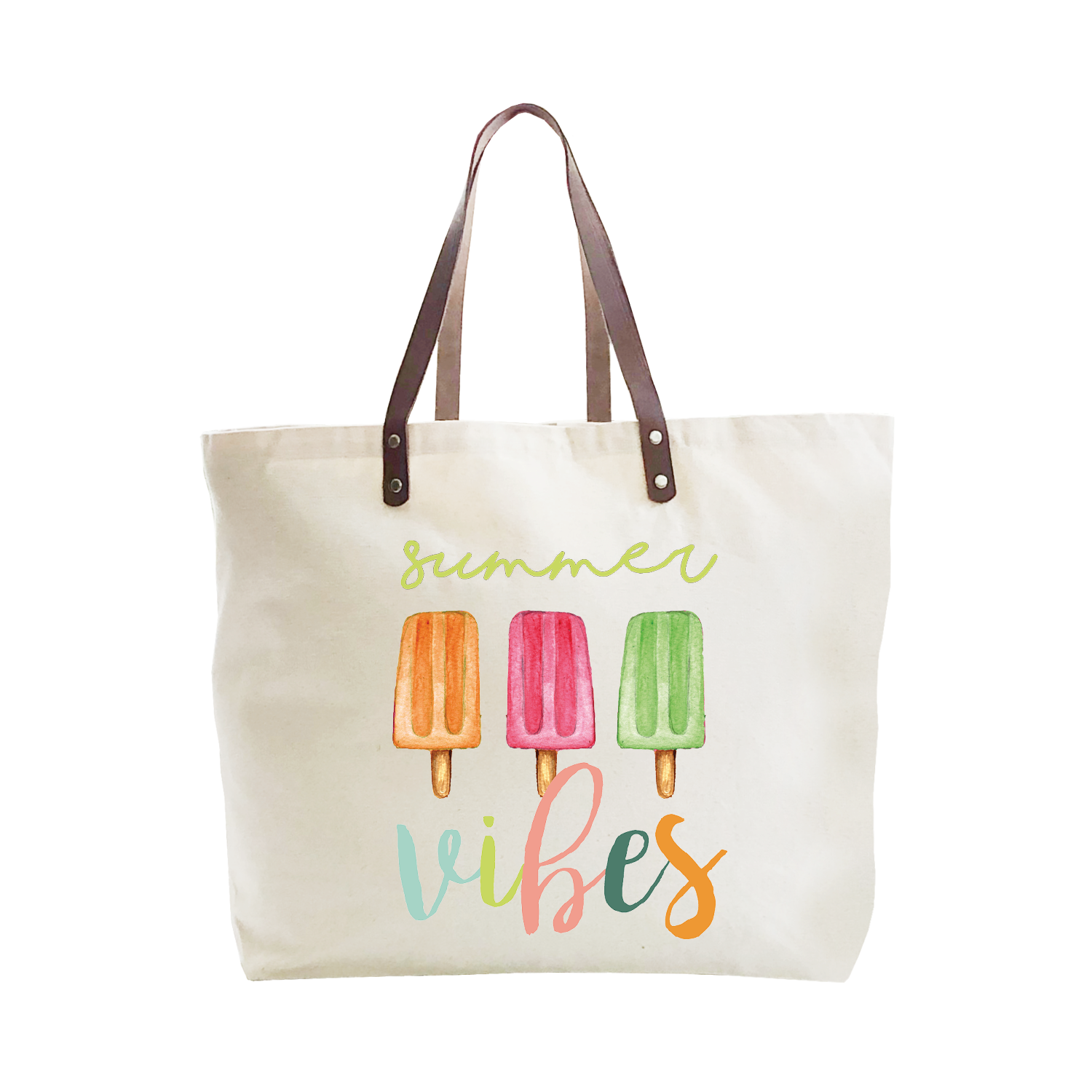 Colorful Pool Vibes Tote Bag 2 SIZES 2 SIZES Medium Measures 15"W x 16"H x 3"D Large Measures 20"W x 15"H x 5"D Both Handles 22" in Length 100% Cotton
