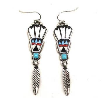 Wholesale Wild Spirit Turquoise Feather Western Drop Earrings