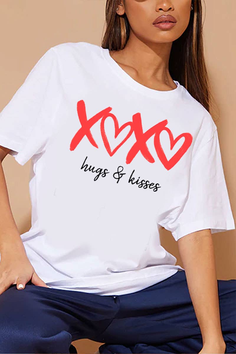 XOXO Love Heart, Valentine, Graphic Printed UNISEX Round Neck Short Sleeve T-Shirt Made to Order