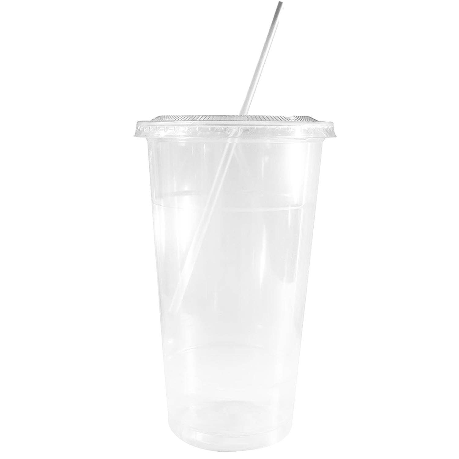16oz Disposable Pet Clear Plastic Smoothie Cups Clear Flat Lids The EcoQuality disposable plastic smoothie cups are perfect to fit in any establishment. Durable clear plastic cup lasts a lifetime. Anti-leak, anti-slip, & comfortable. On the go, traveling, at work, offices, parties, events, break rooms, or even at home, & also designed with a grip to fit a car cup holder. Amazing for smoothies, protein shakes, juices, iced coffee, iced tea, bubble boba tea, lemonade, parfait, soda, frozen drinks, mixed drinks, frappuccinos, lattes cocktails, & more! These cups are 100% environmentally friendly & disposable. Made of pet plastic cup technology ensures that these cups are crystal clear, impact, durable & crack are an eco-friendly brand so we strongly encourage you to recycle.
