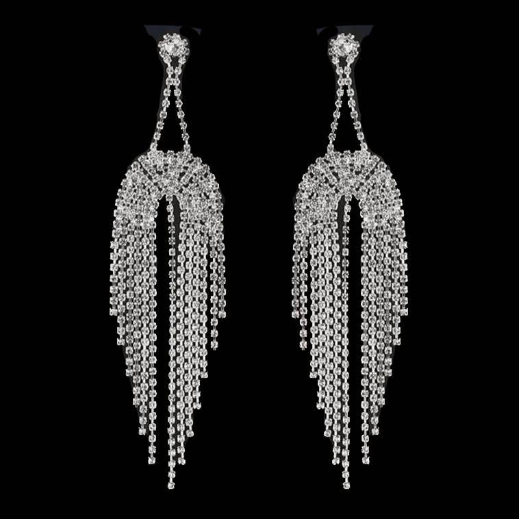 Rhinestone Prom Dangle Earrings - Rhinestone - Brass with Rhodium plating - Post back
