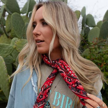 Our classic wild rag/scarf in orange flowers with white background and teal border. A perfect square - measuring 35"x35". Adding that extra touch of a western style to your outfit. 100% soft silky feeling polyester is durable to keep you warm in the cold and fashionable for any occasion. Plus it's machine washable! Additional accessories are available- (Please see our slide options on our site) * Leather slides * Western concho slides * Crystal concho slide * Buckle slides