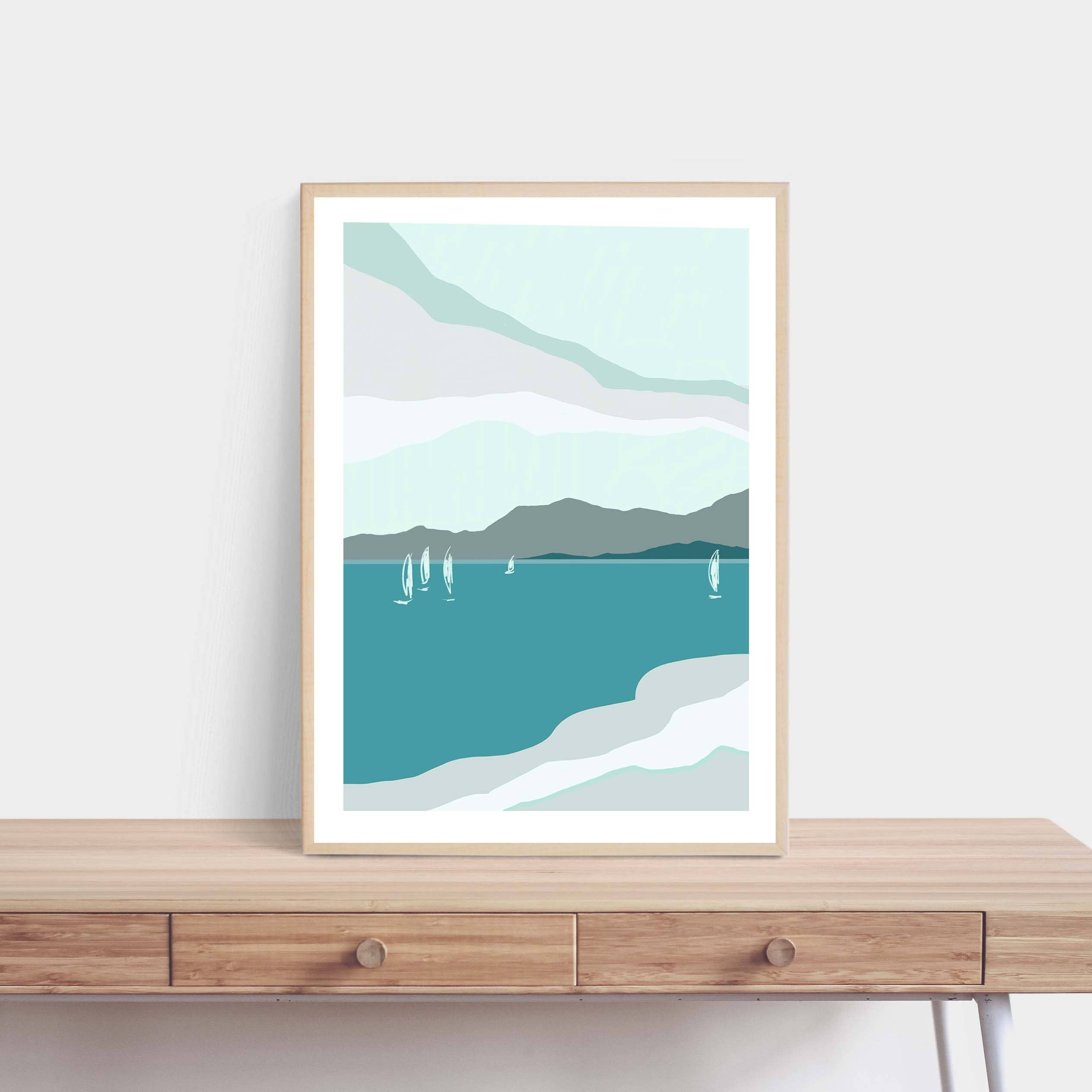 This poster depicts an idyllic scene of the San Juan Islands featuring the islands' rolling green hills, a Washington State ferry, sailboats, a seaplane, and the title "The San Juan Islands" in nostalgic typography. This product is great for locals and travelers alike. We are happy to edit the text for you, if you are based in the San Juans, drop us a line and we will edit it for you for free. Printed on archival and luxurious watercolor paper. Each print is closely inspected by the artists who created it. Human made, never AI generated. Prints are 8" x 10", 11" x 14" or 16" x 20", printed on archival and luxurious watercolor textured paper. Prints come packaged in clear cellophane bags and cardboard backing.
