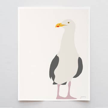 SKU: PA_027_WobblyGull_HN_5x7 Made in United States Color: Blue and White Season: Fall and Spring Style: Coastal Theme: Animals Dimensions: 12.7 x 17.8 cm (5 x 7 in)
