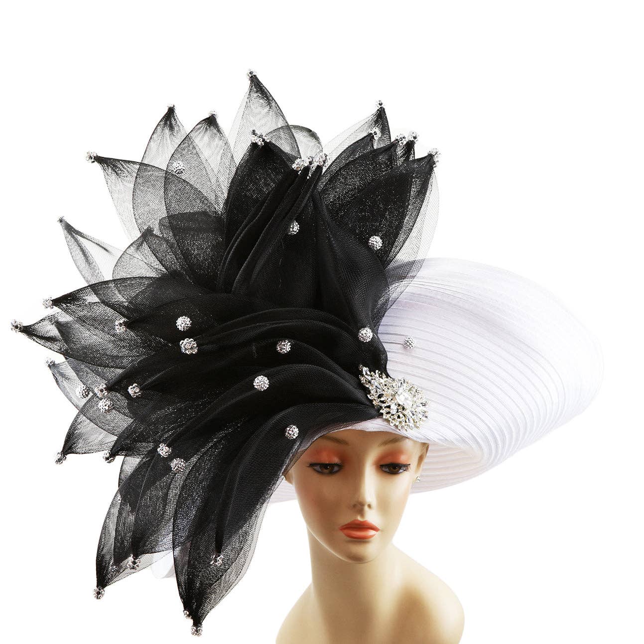 • Crown Circumference : 23" • Crown Height : 4" • Material : 100% Polyester • Make a statement with this elegant formal hat, showcasing a sculpted silhouette accented by sparkling jeweled trim and an intricate bow. Perfect for weddings, church events, and special occasions, it brings sophistication, grace, and timeless style to your ensemble.