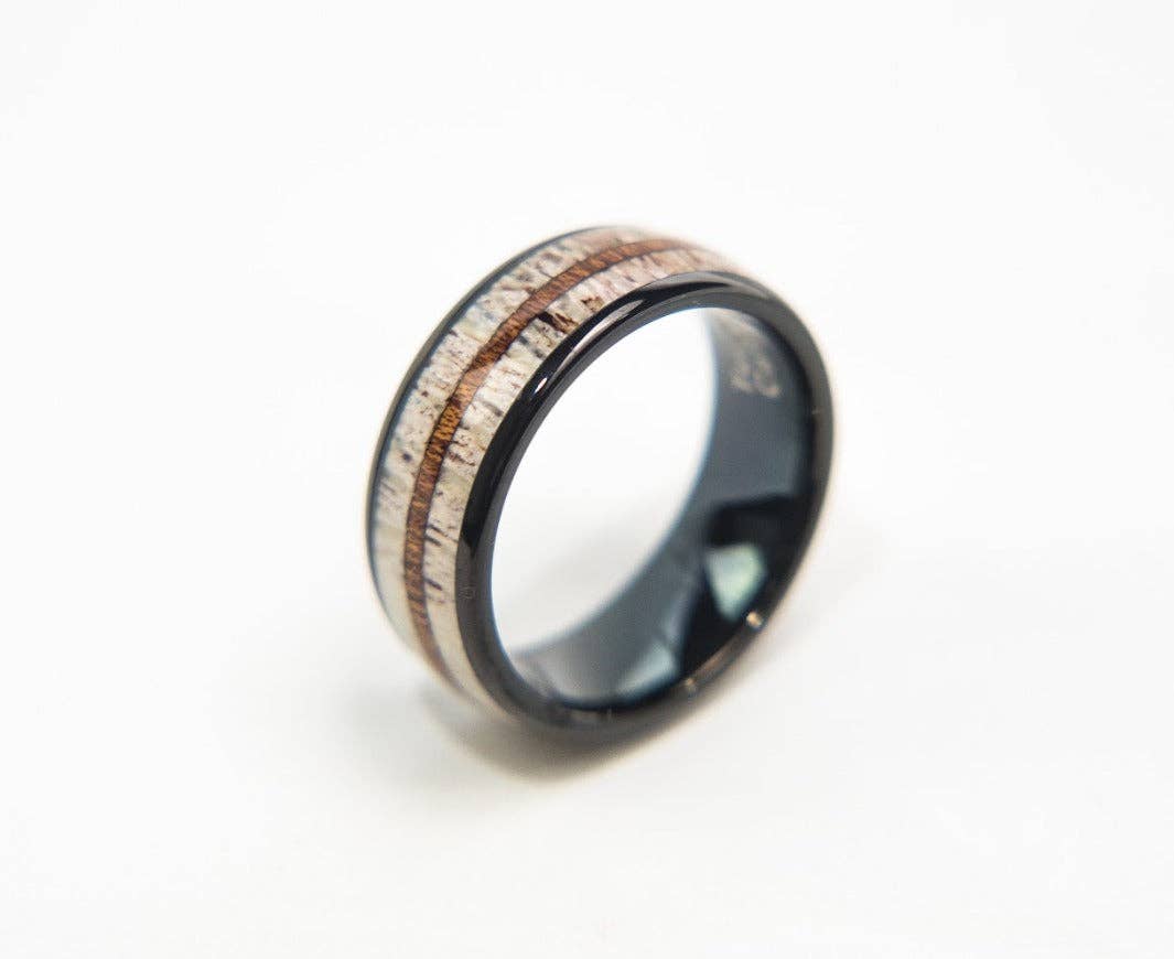 We designed this ring to symbolize strength, stamina, and stealth. Much like the characteristics a seasoned buck needs to survive in the wild, the materials used in this ring bring meaning to the wearer. We use naturally shed deer antler to create a beautiful inlay that is paired with white oak that used to be part of an aged whiskey barrel. And holding it all together is titanium, one of the strongest metals around. DON’T KNOW YOUR SIZE? Don’t worry, you can select “reserve my ring and request sizer” above and we’ll send you a ring sizer to get that perfect fit. Simply email us back with your size and we’ll ship your ring promptly. As an added bonus, a beautiful VG branded Koa wood gift box is included with each ring purchase.