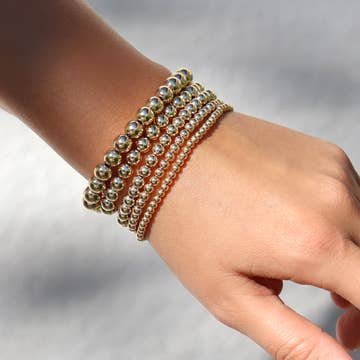Beaded Blondes 4MM silver stackable beaded bracelet. • Sterling silver & elastic string • Handstrung in College Station, Texas. Sourced in the US.