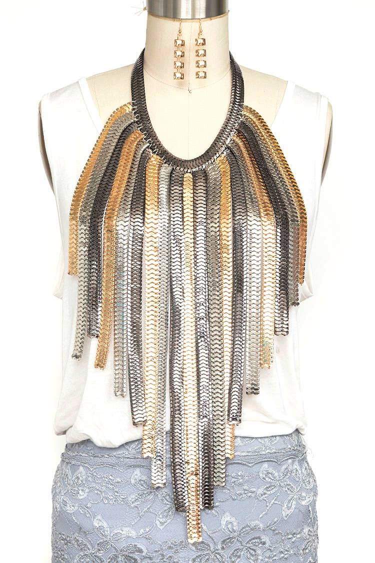RHINESTONE NET & FRINGE HALTER BRALETTE