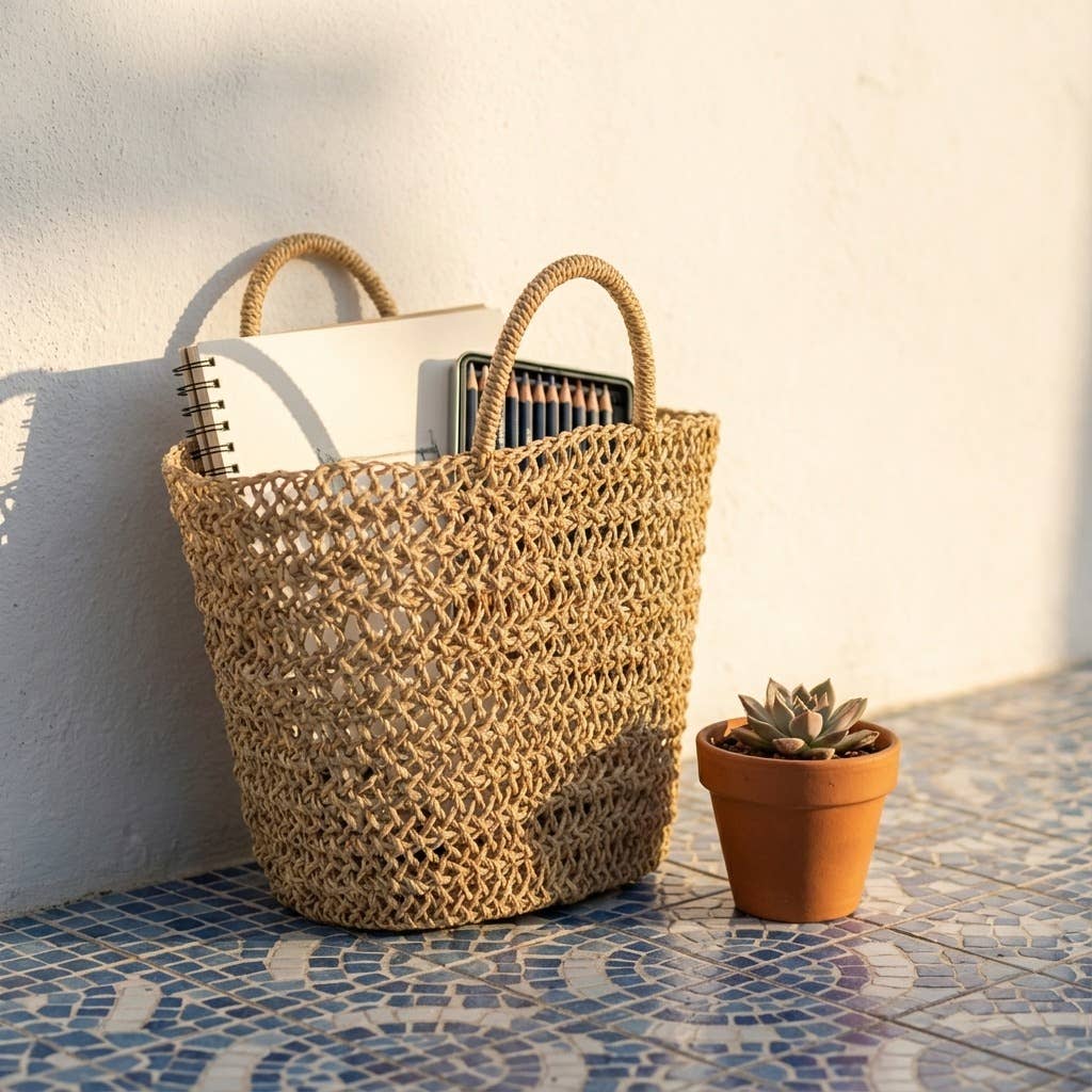 Market Reed Storage, Leather Baskets Shopping Bag.